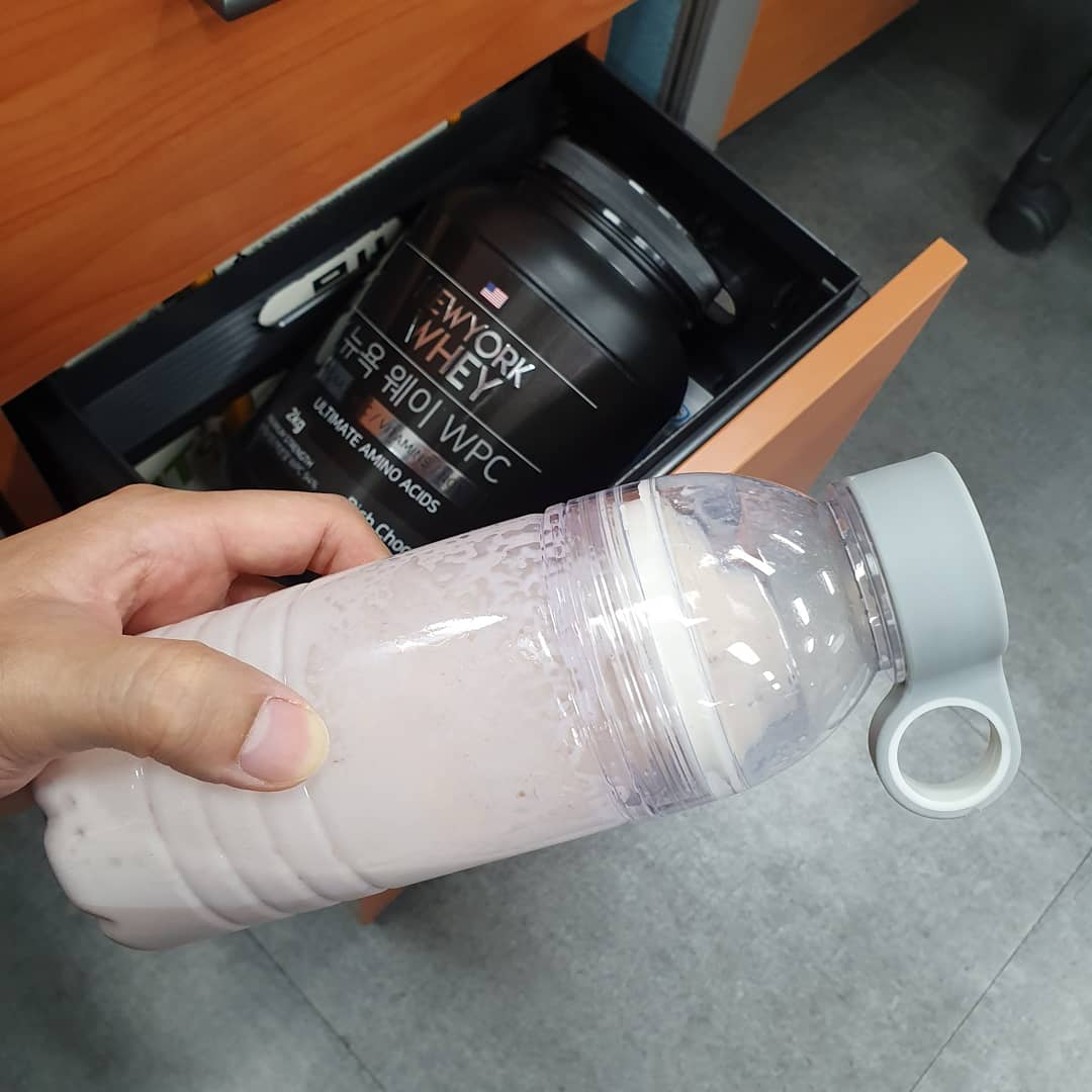 단백질통은 사무실에 두고 점심운동 후에 먹고 있다